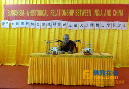 2011年11月21日,全印度比丘僧伽会授予中国佛教协会副会长学诚法师三藏大法师博士学位仪式在菩提伽耶中华大觉寺举行。仪式上,全印比丘僧伽会会长达玛维利长老代表全印比丘僧伽会授予学诚法师三藏大法师博士学位。