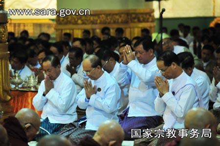 缅甸总统、副总统、各部部长、三军总司令参加供奉法会
