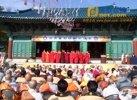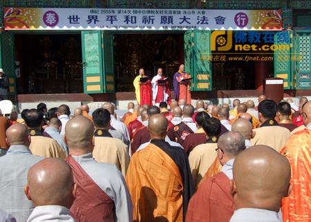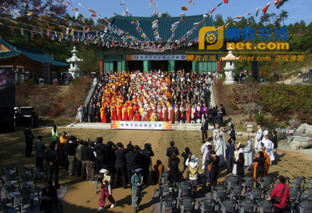 2011年11月2日上午,第十四次中韩日佛教友好交流会议祈祷世界和平法会在韩国江原道观音菩萨道场洛山寺隆重举行。中韩日三国佛教代表团、随喜团共五百多人出席法会。韩国、中国、日本诸山长老分别按照各自国家的宗教仪轨先后诵经,祈祷世界和平,并宣读了共同发愿文。洛山寺临东海而建,环境优美,有如仙境;法会庄严、隆重,反映了中韩日三国佛教徒共同致力于世界和平的强烈意愿。