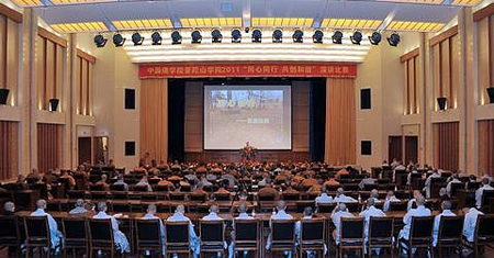 2011年10月28日晚,中国佛学院普陀山学院在国际会议中心礼堂隆重举行了以“同心同行,共创和谐”为主题的演讲比赛。常务副院长兼教务长智宗法师,副教务长续圣法师、界定法师,班主任宽度法师、道崇法师、慧贤法师、一音法师应邀出任评委。