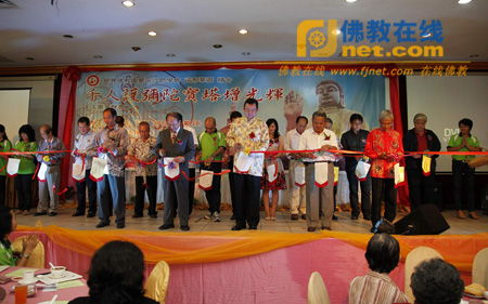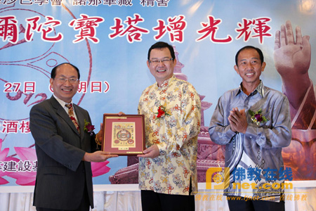 会中并安排拍卖及义卖活动,其中以沙巴分舍供奉多年的“世界和平吉祥塔”小塔最受人注目。捐出此塔希望替“九如圆觉弥陀村”募得更多的经费,与会大众参与非常踊跃,最后以马币$9,888元的高价拍出,善心人士并立即将宝塔回捐给沙巴分舍。