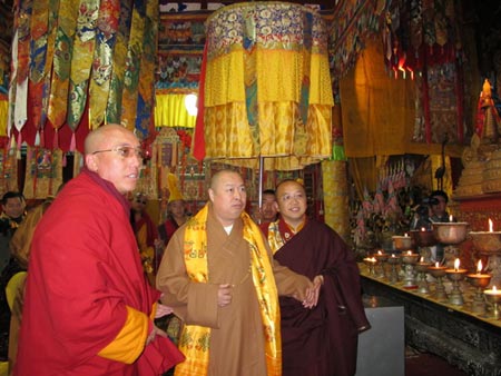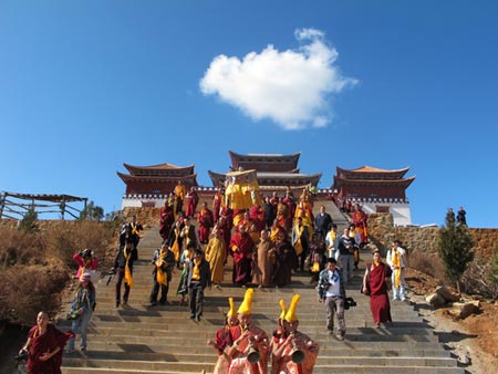视察结束后,东宝·仲巴仁波切宴请印顺法师及随行人员。席间,东宝·仲巴仁波切致欢迎词,对印顺法师及随行人员致以热烈欢迎,并感谢印顺法师亲临丽江视察道场建设,指导丽江佛教事业发展。印顺法师对仲巴仁波切多年来一直致力于丽江的佛教事业的恢复发展做出的贡献表示肯定,并表示今后将增进交流联系,共同为佛教事业多做贡献。