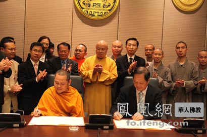 深圳弘法寺与泰国朱拉隆功佛教大学签订合作意向(图片来源:凤凰网华人佛教 摄影:丹珍旺姆)