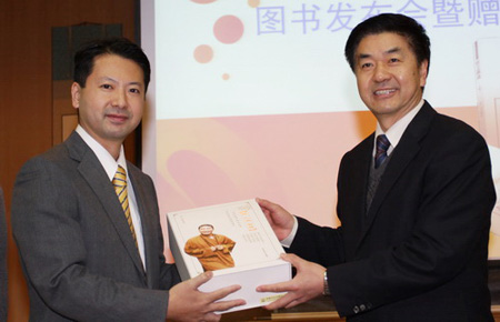 张乐斌副局长代表宗教文化出版社、中国佛学院向日方赠书