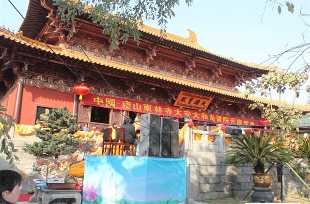 恭维上大下安法师, 夙植德本,善根深厚。明宣净土,广接学人。龙天推举,众望所归。经东林常住一致通过,荣升净宗祖庭住持方丈之圣职!谨于阿弥陀佛圣诞日(辛卯年十一月十七日,公历2011年12月11日),于江西庐山东林寺举行盛大升座法会!