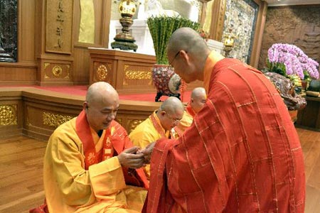 心培法师向到佛陀纪念馆的诸山长老赠送香木袋