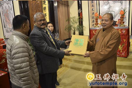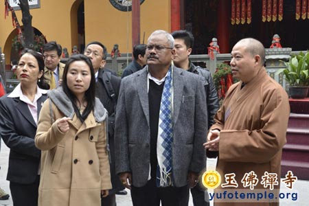 2011年12月28日上午,尼泊尔副总理兼内政部长加查达尔率内政部代表团一行8人到上海玉佛禅寺参观。上海玉佛寺寺务处主任长春法师代表该寺方丈觉醒法师在山门迎接了加查达尔一行。