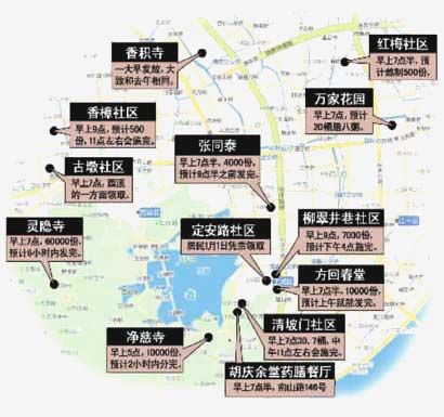 7大城区及福利院、养老院等共计14个施粥点。(图片来源:今日早报)