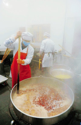 腊八粥提前一周通宵熬制