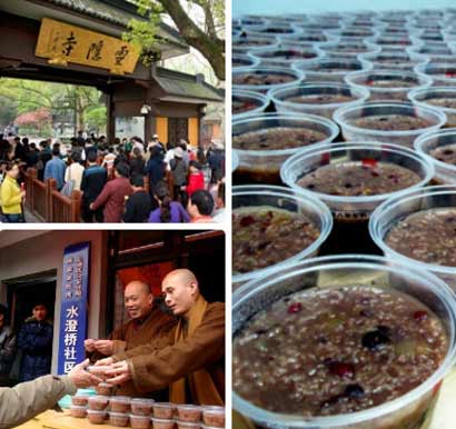 腊八当天,灵隐寺还会在寺里以及杭州七大城区及福利院、养老院设立14个施粥点,免费向市民布施30多万份香甜可口的腊八粥。