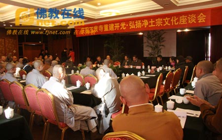 下午1时30分,玉泉寺重建开光·弘扬净土宗文化座谈会在梅城度假酒店举行。建德市统战部领导、专家学者以及杭州佛学院师生等参加座谈会。