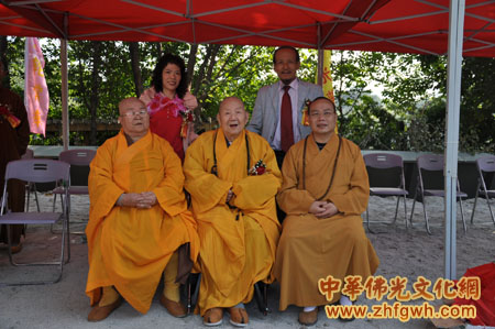 合影留念(左:光玉法师;中:新城长老;右:耀智法师)