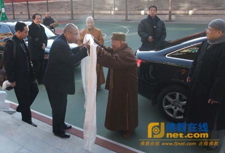 中国藏语系高级佛学院学僧代表向传印长老一行敬献哈达
