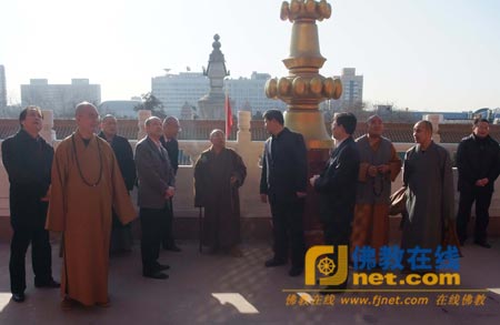 中国佛教协会副会长学诚法师,秘书长王健,副秘书长宗家顺、卢浔、演觉法师、常藏法师,中国佛学院副院长张厚荣、向学法师,副院长兼教务长宗性法师等陪同拜访。(中国佛教协会供稿)
