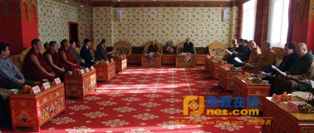 传印会长在阳光楼多功能厅会见中国藏语系高级佛学院全体师生