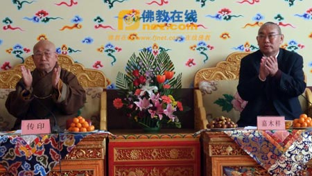 2011年12月25日上午,在2012年新年即将到来之际,中国佛教协会会长、中国佛学院院长传印长老率中国佛教协会、中国佛学院主要负责人专程前往西黄寺拜访中国藏语系高级佛学院,受到中国佛教协会副会长、中国藏语系高级佛学院院长嘉木样活佛,副院长那仓活佛、杨坚赞、王长鱼和全院师生的热烈欢迎。