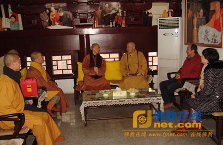 2011年12月21日,福建泉州少林寺方丈常定法师一行到南京毗卢寺参访,受到毗卢寺方丈传义法师的热情接待。