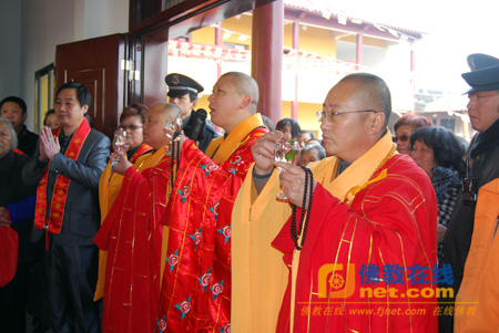 上午10时58分,佛教界诸山长老为大兴寺天王殿佛像洒净开光。