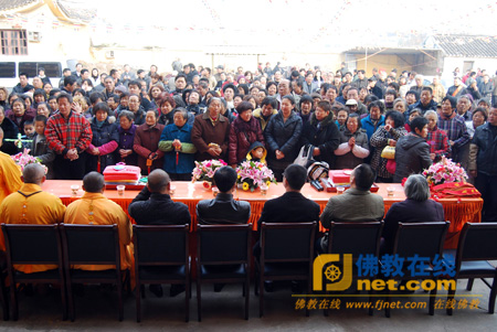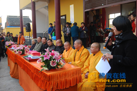 随后,大兴寺住持常来法师致答谢词。他讲到,大兴寺始建于清顺治六年,由江阴名流捐赠所建,后多次有抗清伤兵藏匿于此出家剃度,1949年4月23日,中国人民解放军渡江四纵队驻扎大兴寺休整后进入常州。1967年大兴寺被征用改作江阴县夏港公社景行小学。改革开放以来,在各级领导的关心下,1987年经江阴市人民政府批准在原址重建大兴寺为宗教活动场所,得到了广大村民信众、功德主的护持,现在大兴寺占地五亩有余,建筑面积2000多平方米,常驻法师9人,经常有来自常州、江阴、无锡、上海等地的信众到此参拜,超度佛事,大兴寺的发展离不开在场每一位朋友的关心照顾,在此他表示衷心感谢。