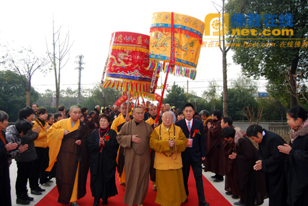 2011年12月2日上午,江苏无锡江阴市(县级)三房巷村源缘寺扩建落成暨全堂佛像开光庆典在该寺大雄宝殿前广场上举行。