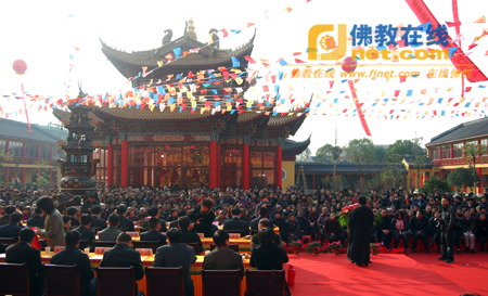 上午9时18分,庆典活动开始。其间,周庄镇党委副书记、镇长傅建荣,无锡市佛教协会副会长颜冬宝,江阴市政协副主席、统战部部长曹恩华分别作了讲话,随后,源缘寺负责人卞友娣居士介绍源缘寺的扩建经过。