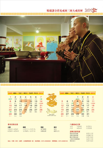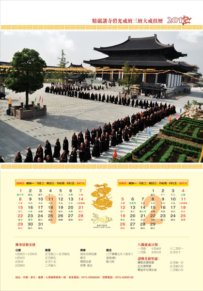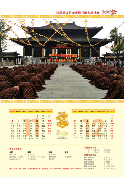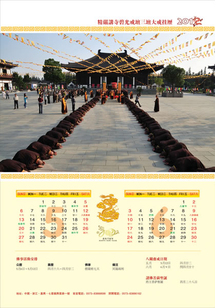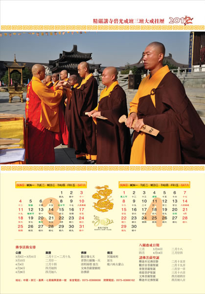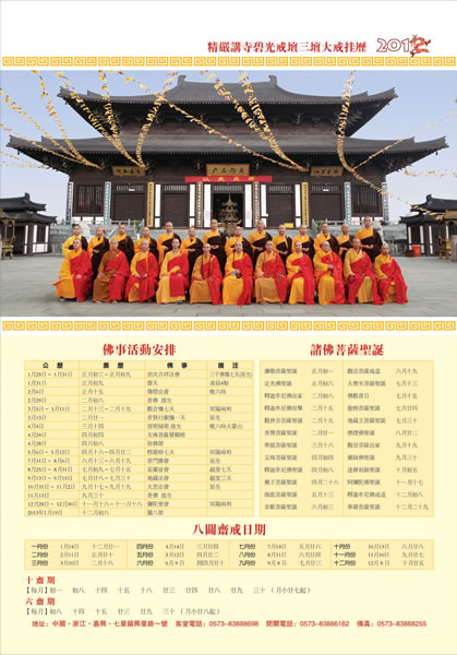 2012精严讲寺碧光戒坛三坛大戒挂历,选取传戒法会最神圣最庄严的场景,最具经典收藏意义,数量不多,正在结缘,欢迎申请。