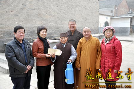 2012年1月9日上午9时,陕西西安长安终南山佛教协会会长 香积寺住持本昌法师,副会长 护国道安寺住持宽严法师,副会长田洪刚居士,秘书长闫麦焕女士,长安宗教局田晓莉局长、王绍辉副局长、刘晓蓉科长等一行十余人前往终南山沿山寺院进行新春慰问,向各寺院送上礼品及慰问金,叮嘱各寺春节将至,加强防火防盗,做好春节法会准备,并恭祝各寺道场兴隆、海众安合。