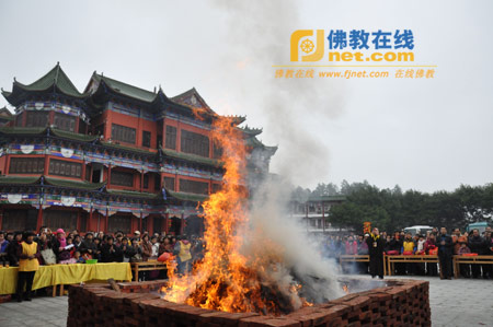 2012年1月27日(农历正月初五)下午,为感恩诸佛菩萨加被,护法诸天护持,祈祷世界和平,人民安宁富足,灾害不起,广东四会六祖寺应四众弟子祈请,于在六祖寺广场中心隆重举行财神安座法会暨财宝天王(北方多闻天王)火供法会。