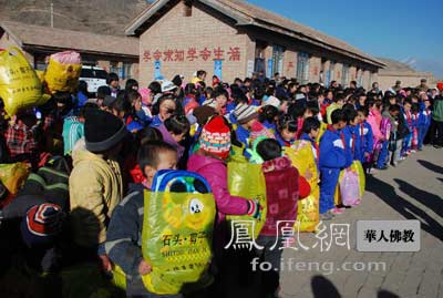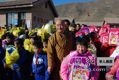 智慧法师一行到达南门峡尕寺加学校(图片来源:凤凰网华人佛教)