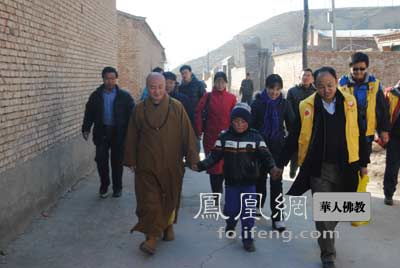 仪式结束后,智慧法师一行又前往贫困学生家庭中走访,鼓励孩子:好好学习,天天向上;学好文化知识,树立远大理想,在爱的阳光下快乐健康的成长。