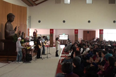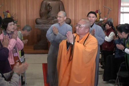 方丈和尚果东法师在天南寺透过视讯向全球护法信众,代表僧团传递2012年“真大吉祥”的祝福,也感谢菩萨们过去一年的发愿与奉献,以感恩心、欢喜心及奉献利他的心团聚在一起,一点一滴凝聚了团体的向心力,增长彼此的福德智能,也在耕耘福田时,体会到佛法的殊胜法喜。