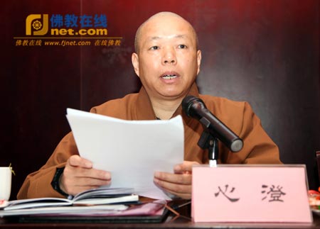 新一届会长心澄法师及全省各市佛教协会办公室主任分别作了省佛协和各市佛协2011年的工作总结和2012年的工作规划报告。随后,省佛协各位副会长在会上作了述职报告,与会人员对各位副会长的述职一一作了细致的考评。