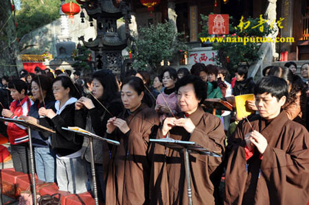 2012年1月18日(农历腊月二十五),适逢新春佳节即将来临之际,福建省厦门市万石莲寺隆重举行了大雄宝殿修缮竣工暨新春祈福斋天礼忏消灾吉祥法会。法会敦请虎溪岩寺知客传航法师主法,万石莲寺住持法源法师领众拈香礼拜,恭迎四王帝释,祥云护绕坛场,以虔诚供养十方三宝之功德,祷祝世界和平,国泰民安,十方善信增福增慧,远近檀越阖家平安,所愿皆成,万事如意,新年大吉。