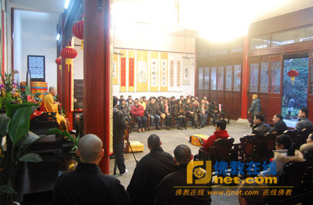 法会结束后能超法师又在开原寺法语堂为80余位信众讲经说法,作新年开示,能超法师用通俗易懂的语言详细讲解了“市场经营与佛理人生”的连带关系,号召大家用慈悲的情怀对待社会上的每一个人、每一件事,力争做到自信心和包容心并存,为构建和谐社会而尽心尽力。最后能超法师在“云来居”素斋馆设“吉祥感恩答谢宴”款待了所有参加活动的来宾。江苏省佛教协会副秘书长、无锡市佛教协会副会长陶建丰居士、原国家体委登山运动协会主任潘多女士等知名人士参加了本次活动。(图、文:唐明)