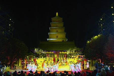 “莲花开、福气来”。2011年12月31日20时,2012“雁塔祈福·钟鸣五洲”跨年文化盛典在西安大慈恩寺正式拉开帷幕。高科技祈福传全球成了这次活动的最大亮点。此次跨年文化盛典活动首次使用了光电技术,凡是走进大慈恩寺的市民,每走一步脚下都会有莲花盛开,使得市民们“踏福而来”“带福离去”;在大慈恩寺里,还设有百米长的“祈福墙”,以及微博和电子互动屏,让古城市民体验高科技互动祈福方式。另外,市民纷纷把新年的心愿写在了福卡上,悬挂于祈福林中,或手捧莲花灯,绕着大雁塔祈福。