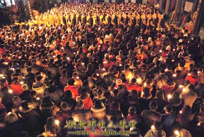 共同点亮心灯,传承这盏智慧与爱心的光明之灯。(图片来源:空林人生佛教网 摄影:成都文殊院)