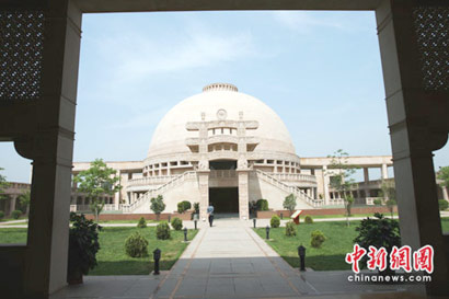 洛阳白马寺印度风格佛殿,是印度政府在世界上捐建的第一座佛殿。由中印两国联手建造,它的灵感来源于传统印度佛教的建筑。(图片来源:中新网 摄影:王中举)