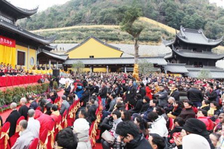 2011年12月30日上午,宁波古阿育王寺(广利禅寺)落成典礼在寺内的大雄宝殿大门前举行。