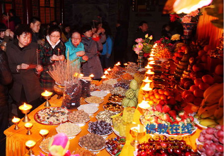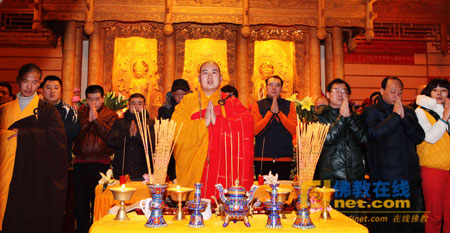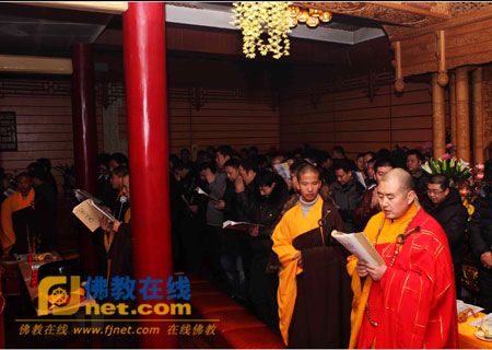 2012年1月31日(农历正月初九)清晨5时许,山西省五台山黛螺顶隆重举行斋天祈福法会,法会由黛螺顶住持昌善法师主法,来自全国各地的信众一百三十余人参加了法会。