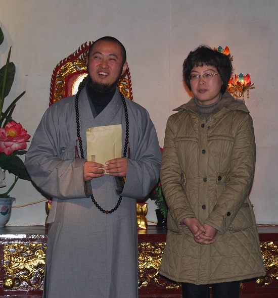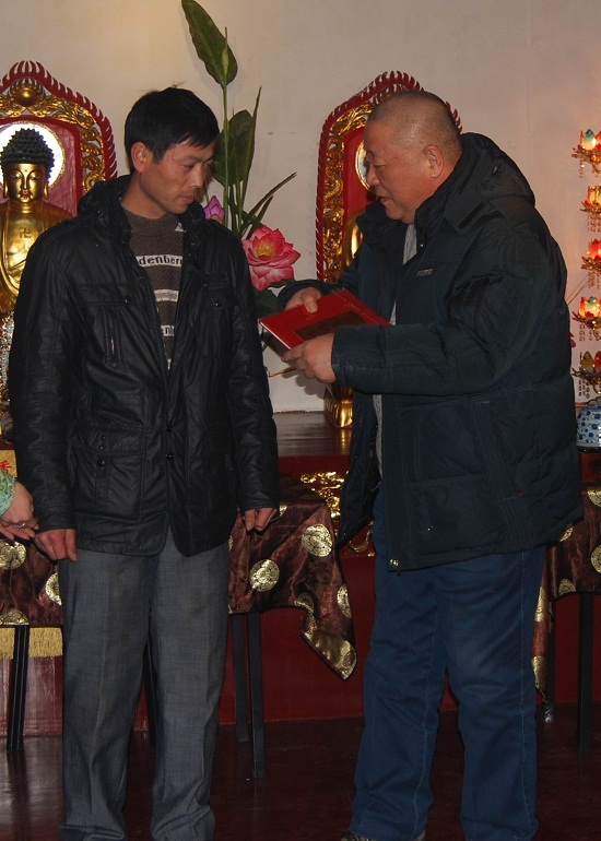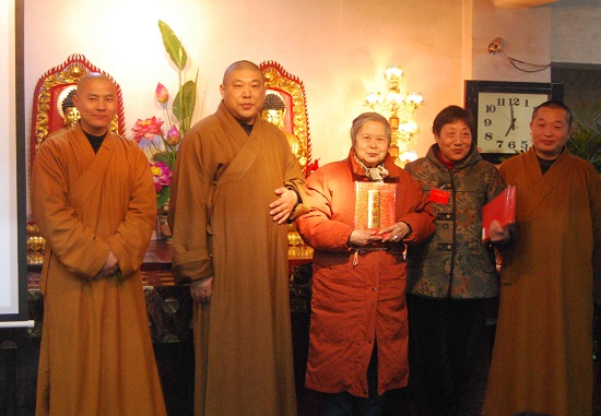 无锡市佛教协会副会长颜冬宝为居士授予荣誉证(摄影;唐明)