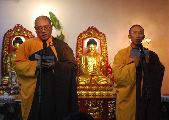永兴寺愿祥法师、惟善法师吟诵《暮叩钟偈》(摄影;唐明)