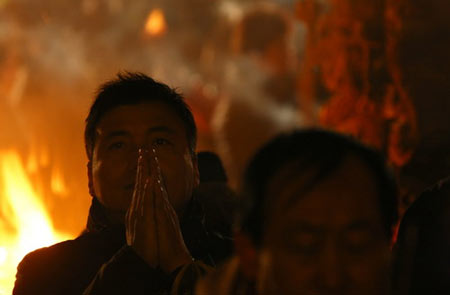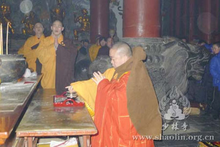 为迎接新年的到来,2012年1月22日(农历腊月二十九除夕)下午4时,河南嵩山少林寺在该寺大雄宝殿里举行了隆重的祈福法会,由少林寺方丈永信法师亲自主法,带领该寺200余名僧众共同祈愿祖国风调雨顺,人民安居乐业,世界和平安宁。并于法会结束后到少林寺祠堂,按照少林寺千百年留下的方式祭祀了历代祖师。来自少林慈幼院的孩子们也参加这场新春祈福法会。