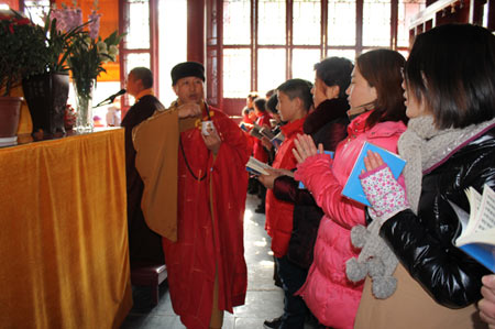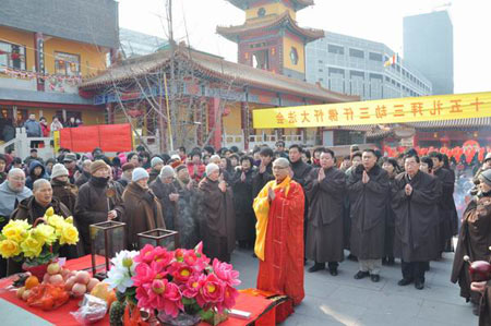 23日大年初一,寺院为庆祝弥勒菩萨圣诞吉日举行了祝圣法会。将近两万名居士、市民参加。据悉正月初一至十五,荐福观音寺每天下午还将启建礼拜三千佛忏法会。