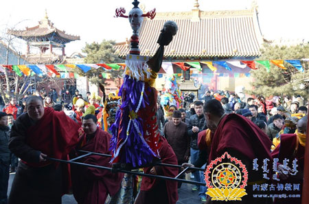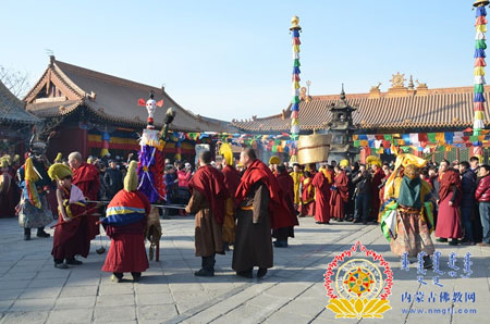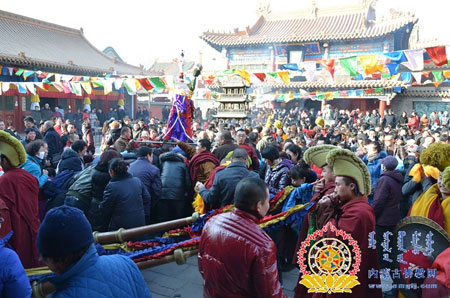 2012年2月5日(农历正月十四),内蒙古呼和浩特市大召(无量寺)举行送巴令活动。