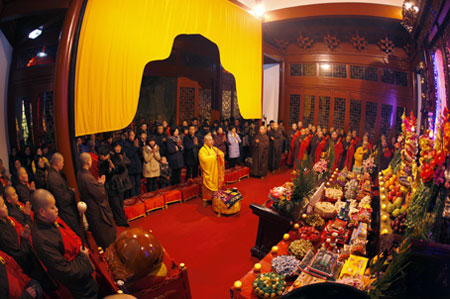 2012年2月27日清晨五时,浙江省绍兴市炉峰禅寺隆重举行文昌阁落成暨文昌菩萨圣像开光法会,方丈净芳法师亲临主法,如法如仪,法喜充满。