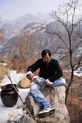 张剑峰给山上带了一个坛子,以便做泡菜(图片来源:华商网)