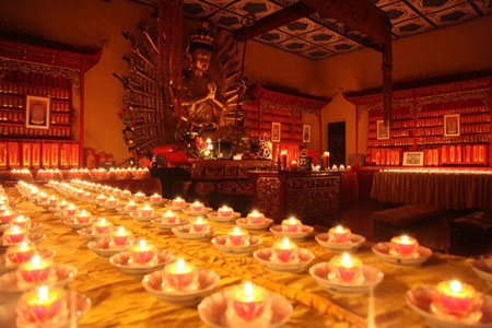 四祖寺龙年上元节法会首日:安位结谈、诵经、消灾吉祥供灯