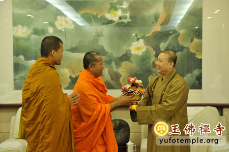 上海玉佛寺方丈觉醒法师接见泰国沙威·乔迪克法师
