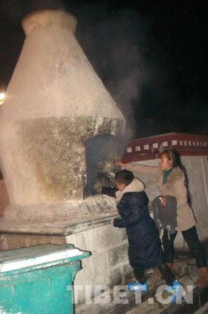一大早,记者来到位于拉萨老城区中心的大昭寺。只见大昭寺广场上人流如织,两个香炉里的香火燃得正旺,浓浓的桑烟笼罩着整个广场。朝佛的人们不断地向香炉里添加桑叶,撒糌粑、青稞、小麦和青稞酒,祈祷新年生活幸福安康。据悉,大昭寺2月21日晚还举行了新年祈祷法会,当晚10时起便向朝佛群众开放,十几个小时过去了,朝佛的人流依然络绎不绝,长长的队伍一直延伸到寺外的八廓街上。