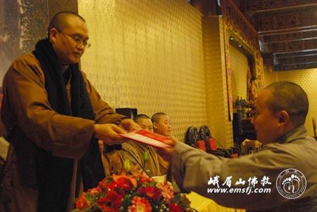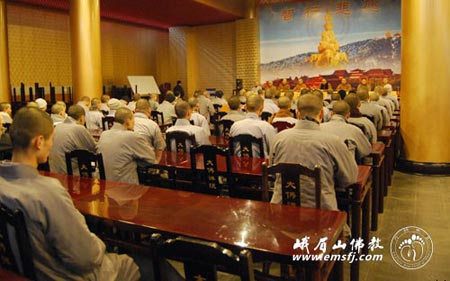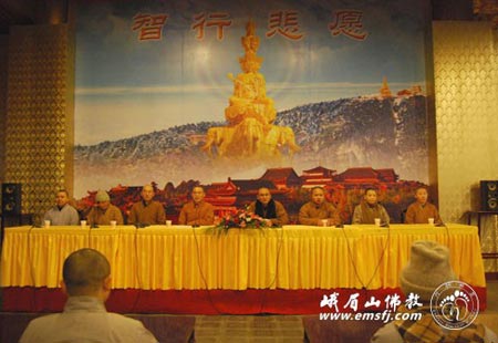 2012年2月12日上午,峨眉山佛学院在大佛禅院峨眉讲堂举行2012年春季开学师僧座谈会,峨眉山佛学院副院长满霖法师,教务长法源法师,副教务长演妙法师及佛学院的法师、学僧上百人参加了座谈。座谈会由法源法师主持。